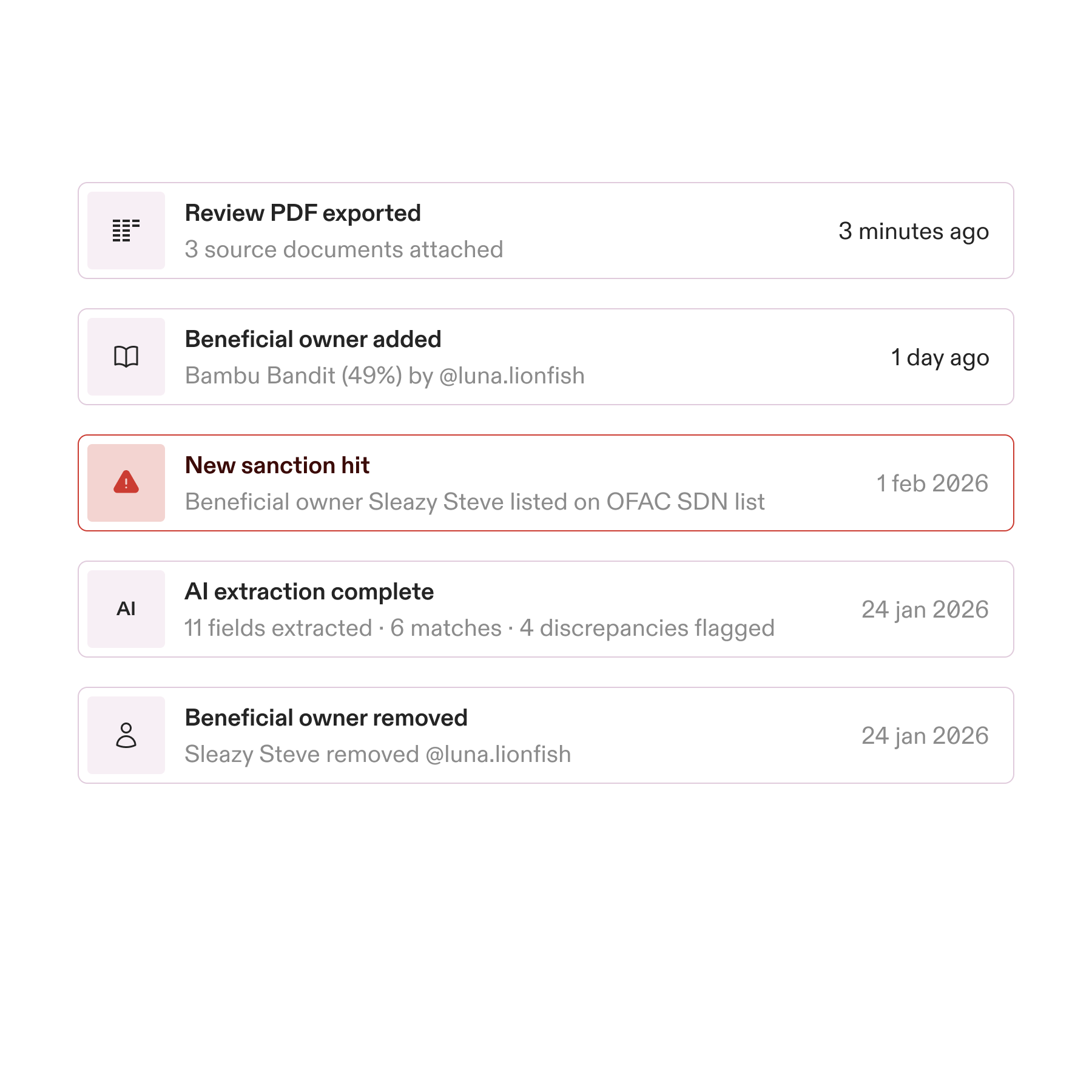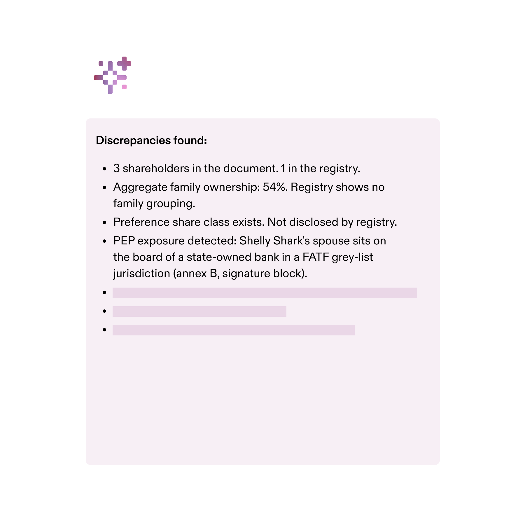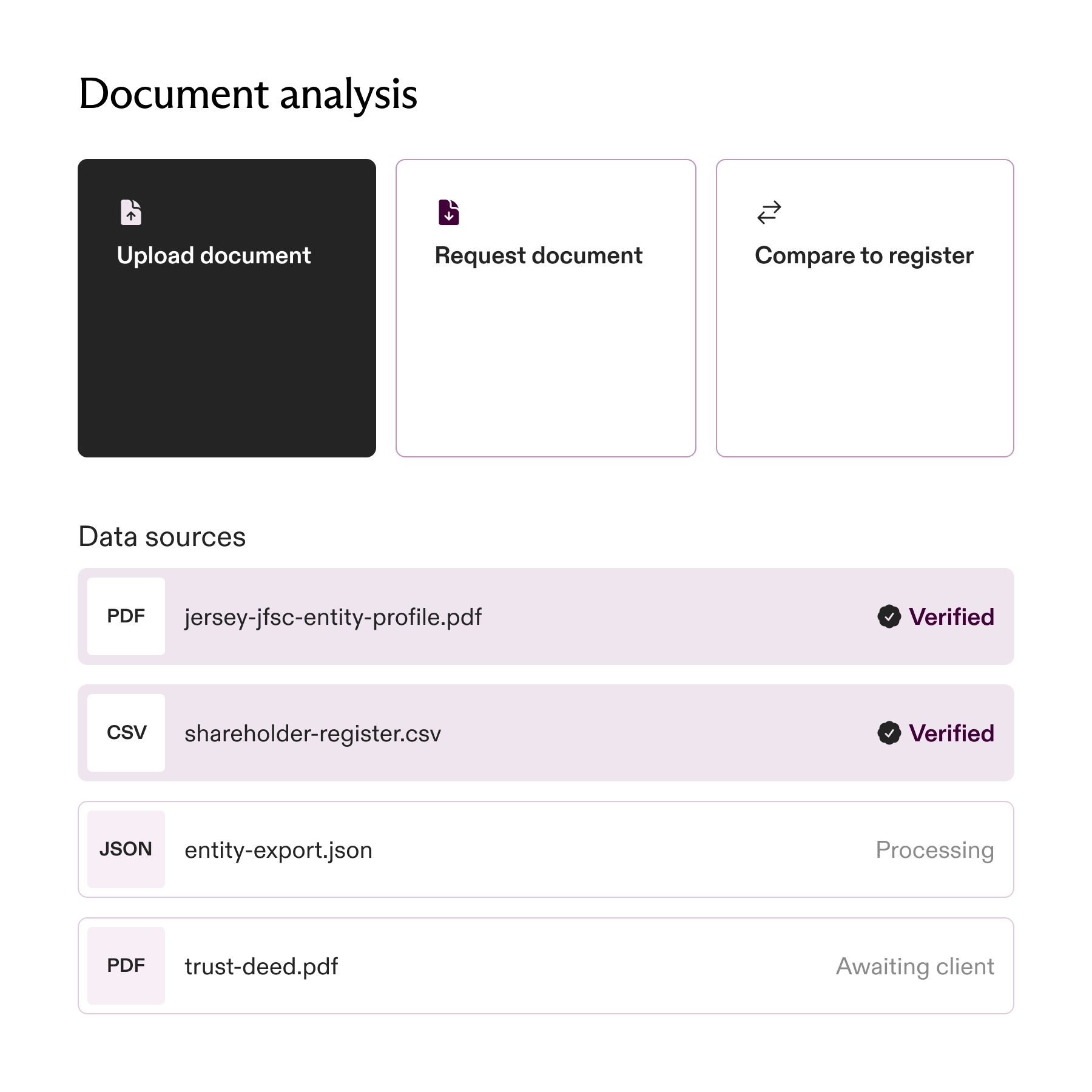 Turn any document into structured entity data, reconciled against the registry, in minutes. No manual entry. No missed risk.
